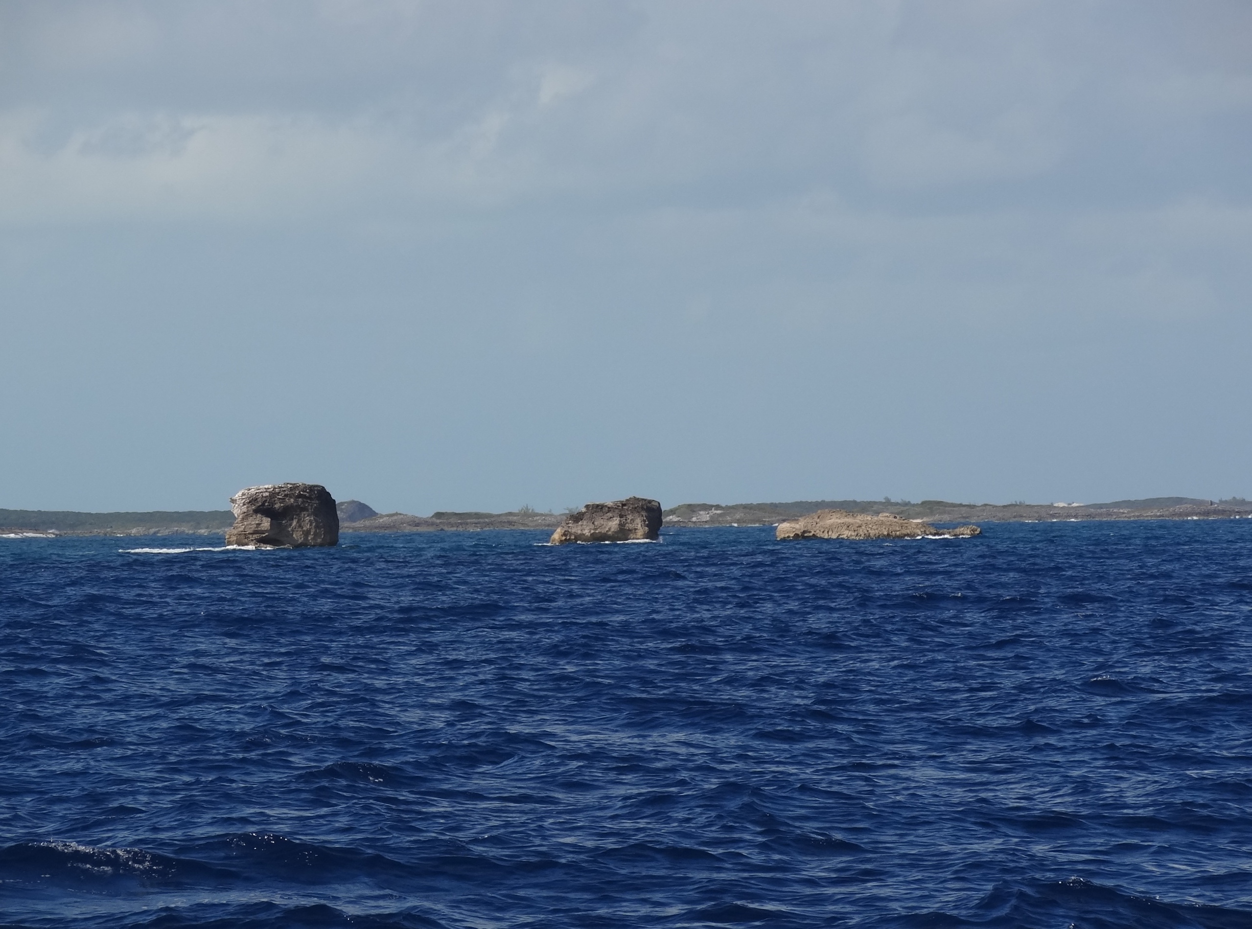 We staged at the same spot we did last year; worked well then, why not this time? Russ read an ActiveCaptain review that further down off Rudder Cay, David Copperfield had placed a sizable piano and mermaid sculpture in 15ft of water just off the channel for our snorkeling delight. We considered going that far but nixed it in favor of beach walking, promising ourselves to stop on the way back. Only one other boat stopped at our spot and we were happy to see it was Matt and Tina on s/v Mattina-clever uh? Farley is the star of the show though and even I couldn’t resist giving him a big hug – allergies be damned. No barking, very patient – the perfect boat dog. Mattina’s plan was to stay on the protected banks side and enter the Sound through Rudder cut; would be closer to slack tide by then. Our plan was to jump out at Galliot cut about a mile away if the wind was down enough in the morning. Backup was to continue on to Cave Cay cut or Rudder if we didn’t like the looks of Galliot cut.