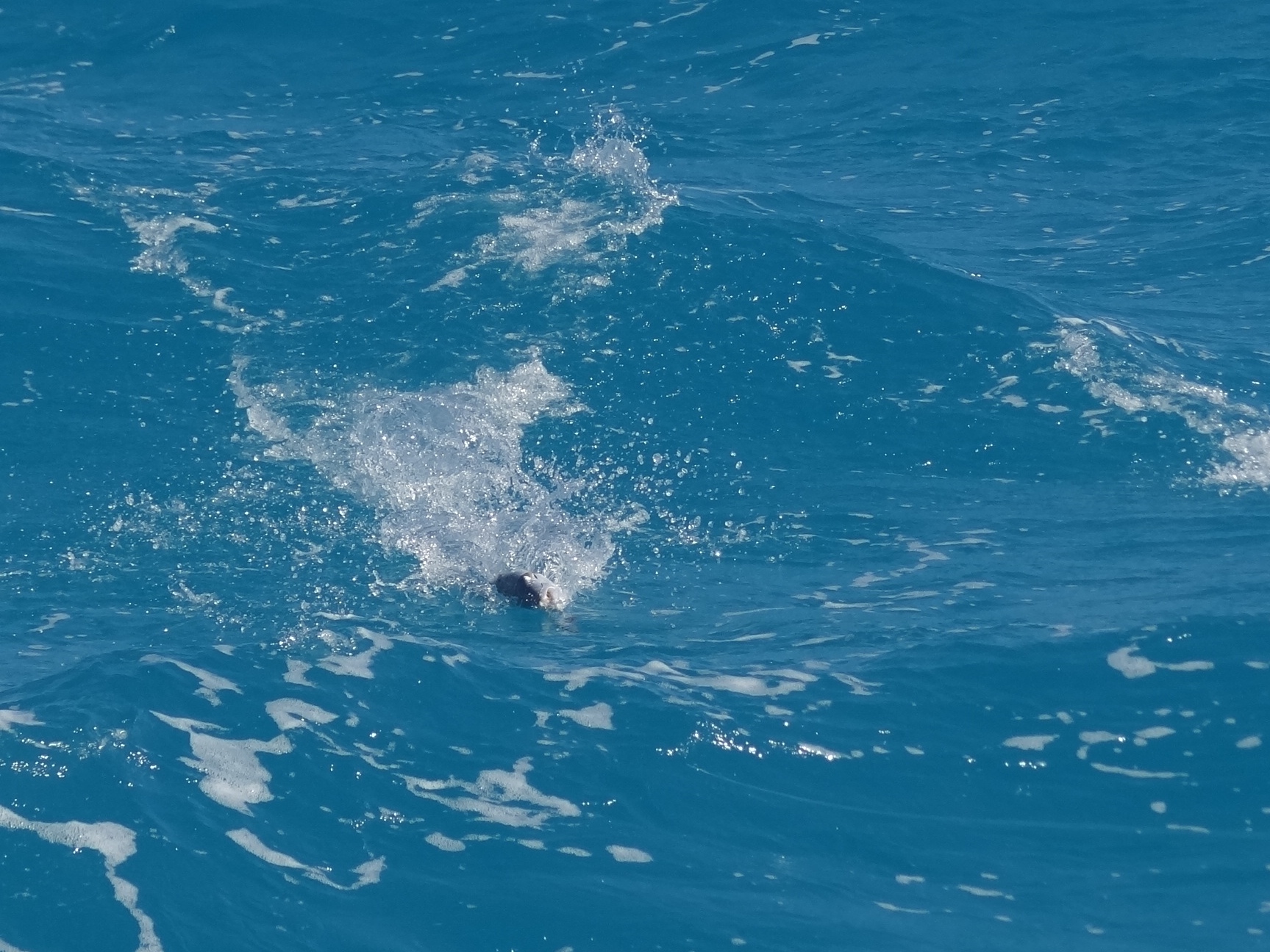 Soon after the first one, we got a solidly load notice that another was on. This one was about 3ft and dove under several times before Benj could reel him in; he was thrilled- that would be Benj not the fish. Before we could get that one in the bucket, the starboard line zinged, the yoyo was pulled into the water… barely tied on to the cleat. It didn’t remain tied when the tension came off the line and I was inches away from grabbing it as the whole thing waved bye-bye and sank (we hope) into Dave Jones’s locker.