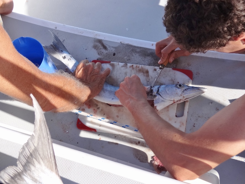 The fish were biting that day and before you could say “Captain Jack Sparrow” we’d landed a third barracuda just a few inches shorter than the big one. We’re running out of room by now so when another hit ends up getting away and still another we let off the hook, I’m definitely ok with that.