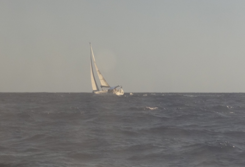 Our Thursday Feb 6 sail to Cat Island is best described as brisk and wavy, somewhat closely hauled but averaging over 7kts. We left the harbor behind six others, four headed for Cat about 30 mins, or 3nm ahead of us. By 11am we’d passed two well-heeled monos, by noon the fishing lines went in when the wind and waves backed down to our comfort zone; I don’t want to gain a fish but lose a husband! Nothing more than a nibble though.