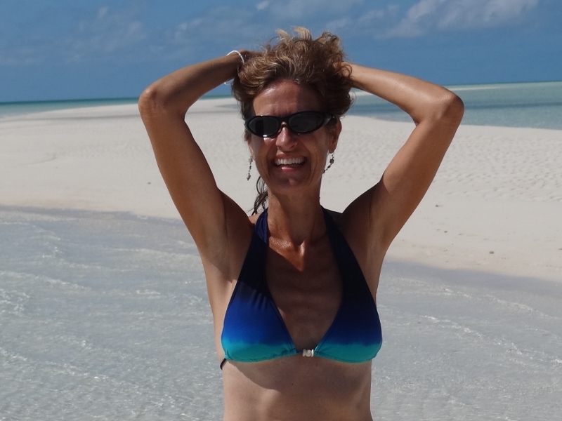 Tuesday (Jan 11) we headed out to our favorite sand bar which sits one mile west of Cave Cay. This was the site two years ago where we took the photo you see as our Gravatar, using the timer and setting the camera on top of the dinghy box which we set up on the seat. Today was another gorgeous low wind, clear, low humidity day; perfect for beach combing and feeling very lucky to be here.