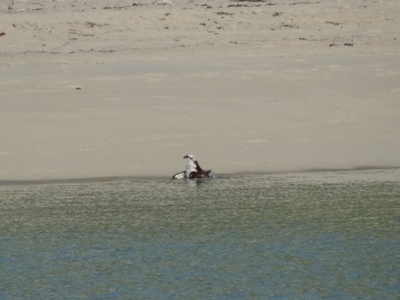 As usual we spotted rays and needlefish and we did see something new. Back aboard around 5pm we watched an osprey indulge in a lengthy bathing routine at the water’s edge.