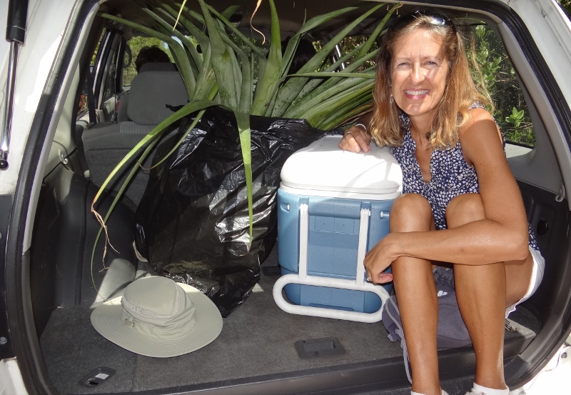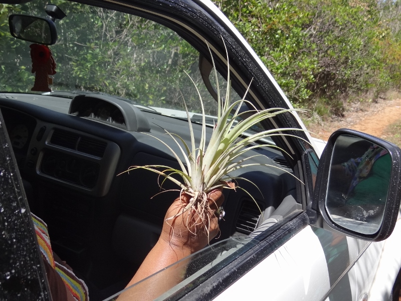 The prize bromeliad was HUGE and got stuffed in a black trash bag. We had to share space in back