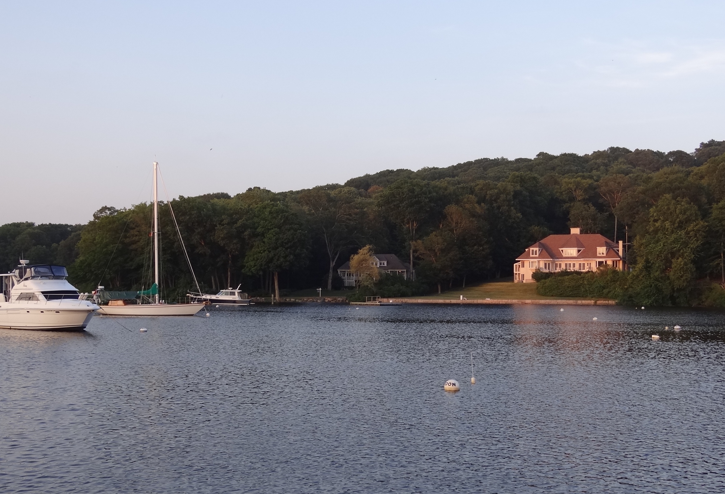 Low SW winds held some promise of a motor-sail across LIS; and that we did with very calm waters. Our big surprise resulted from raising the main; not only did gallons of water dump out (as expected because our sail and stack pack make a perfect water catchment system, but a crap-house full of spiders with broken dirt dwellings, came spilling out all over the roof top and stern- ugh it was awful and messy. So I’ve done some serious Google research and submit my conclusion: a mud dauber wasp builds a multi-celled mud nest, collects spiders, paralyzes them and lays one egg on each spider, placing the unit in a cell, covering the cell and making another. Here is a link to a more detailed tale along with better close-ups than I took.