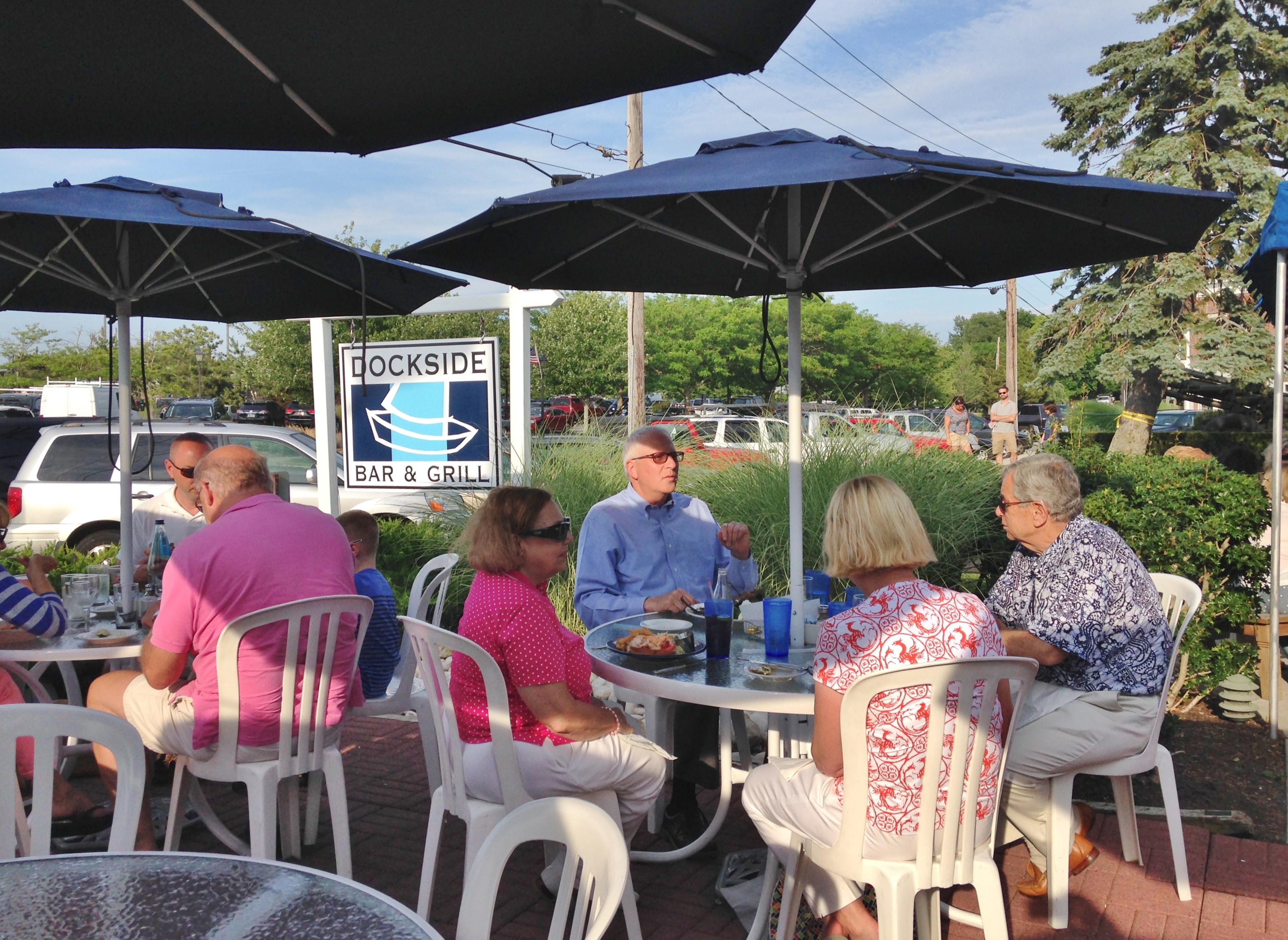 The obligatory town walk through completed, we headed to our favorite dinner (and lunch) place, Dockside Bar & Grill at the American Legion across from the town park. Always a delicious meal outside under the umbrellas; a not so pretentious bit of NY dining.