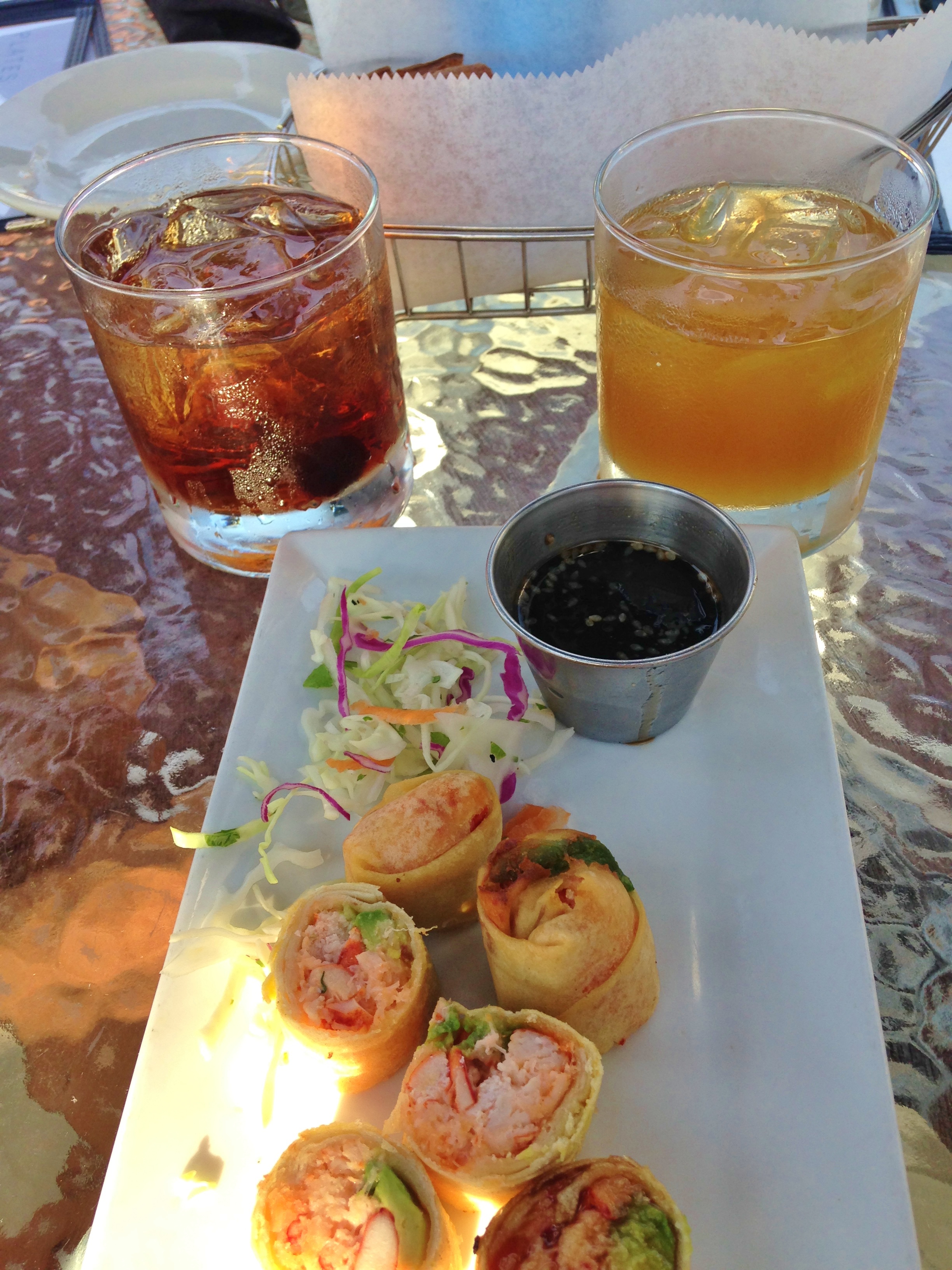 We splurged; consuming way too many calories and spending like drunken sailors on shore leave. Our appetizer was an engaging lobster/avocado spring roll. Russ chose a Serious Manhattan and my unique Earl Martini excellent; Earl Grey infused Bombay gin, lemon juice and agave. Yes, do try this at home.