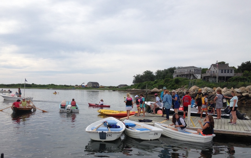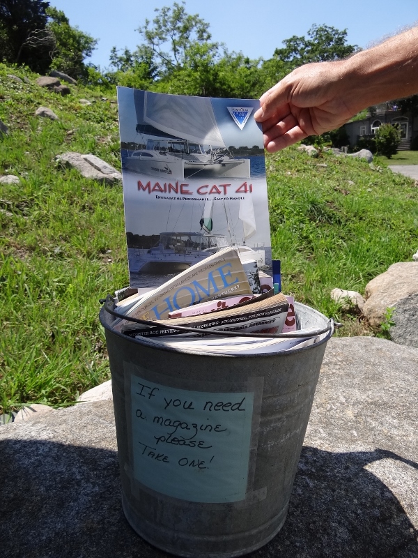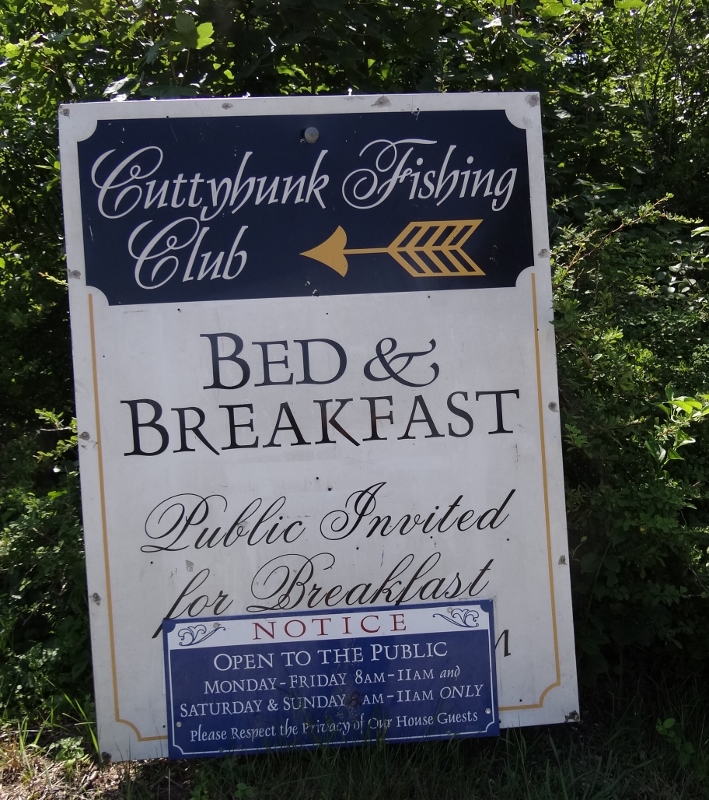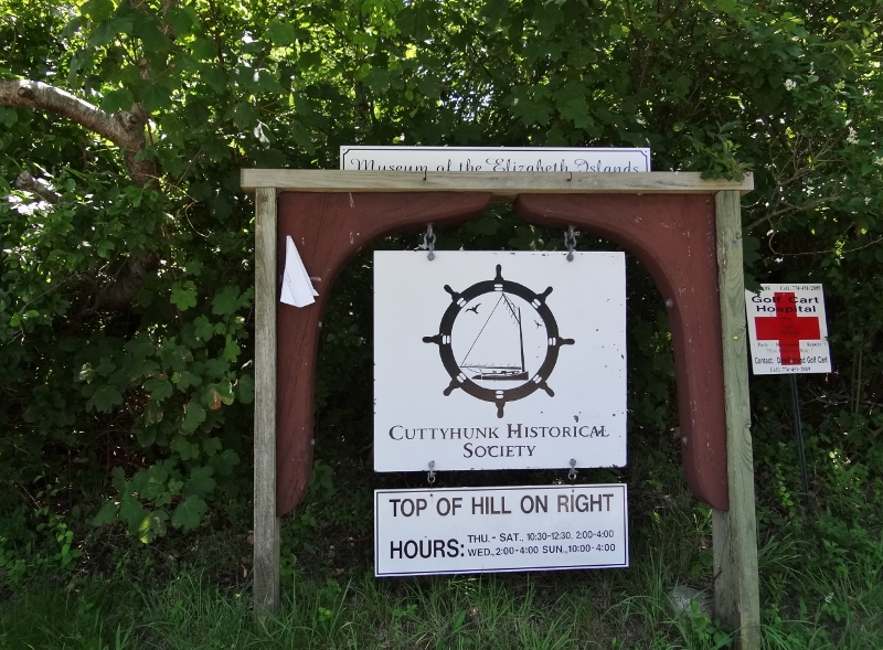 A walk up the main road left no doubt summer was in full swing; the food carts and shack beckoned with breakfast and lunch delights, business was brisk on the fisherman’s dock, the Corner Store (with the best t-shirts most anywhere) tempted us with sale bins and the Cuttyhunk Historical Society was open! The exhibit told primarily of the history of the two fishing clubs as well as life on the island through the years. One display was a letter describing the rescue of a ship’s crew that wrecked on the reef in bad weather. The heroics and selflessness of those courageous lifesaving folks is humbling. They used a breeches buoy, which we’d seen demonstrated at Mystic Seaport some years ago, and on the third (and final) attempt, the line reached the ship. Five hours later all were safely ashore, although nearly frozen, this being winter naturally.