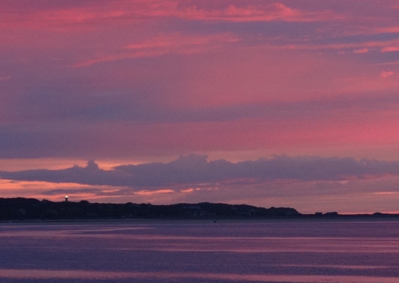 Once again we got lucky with the winds and were able to anchor off the beach without being rocked silly. The beach on the west side of the breakwater gave up a baggie full of wampum and sea glass. The topper was the splendid, ever-changing sunset that I tried to capture, but believe me the real event was even better than these photos.