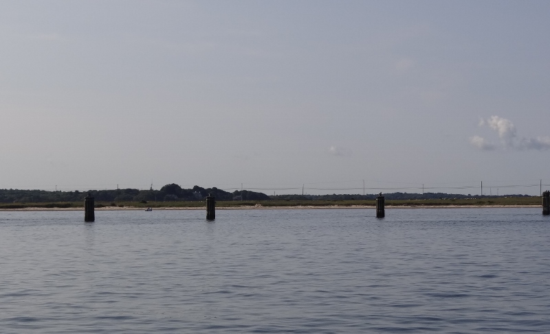 Back in the Exumas, Farmer’s Cay celebrates their 5Fs (Farmers First Friday February Festival); this year the Cape Cod Canal celebrated its centennial, so 5Cs. The Morgan’s voyage coincided with this celebration. After bidding farewell to the Morgan, we headed up a few miles to anchor behind Mashnee Island in Phinney’s Harbor. The fireworks barges tied up at the west stakes which was near the canal opposite our location, on the west side of Mashnee. Any closer, we’d be on the barge!