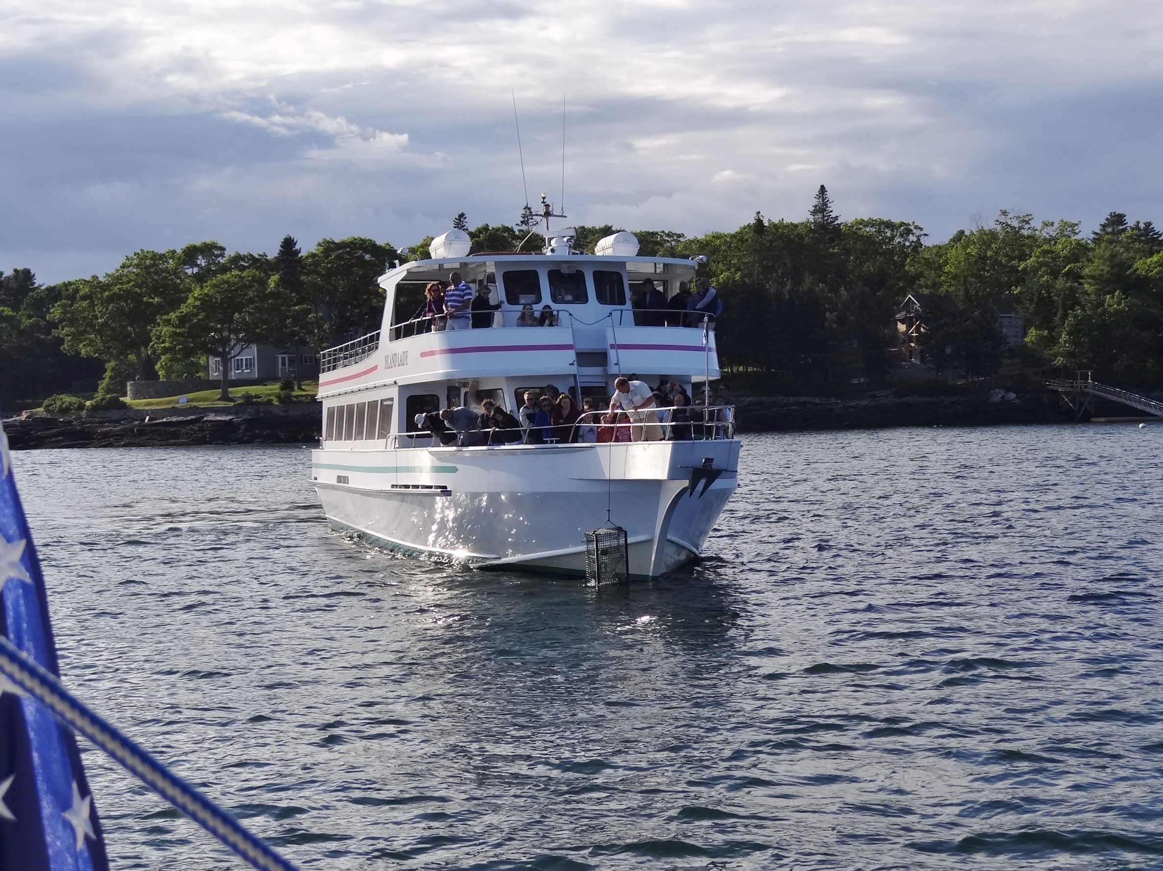 Boothbay Harbor welcomes local and far off visitors in abundance but this seems to be on the downside of the tourist season so we never had trouble doing anything we wanted. The harbor is active, with pleasure boats, lobster boats, tour boats, sailing schooners all happily sharing space. We watched them come and go. We never had more than 3 boats total anchored off the point which sits about ¼ mile from the town dock. The tour boat Novelty would stop around 5pm to pick up one of two pot floats they have to show the curious customers how it all works and they always had one lobster for show and tell. Sure, why not have a lobster pot in the middle of the anchorage just to add to the fun?