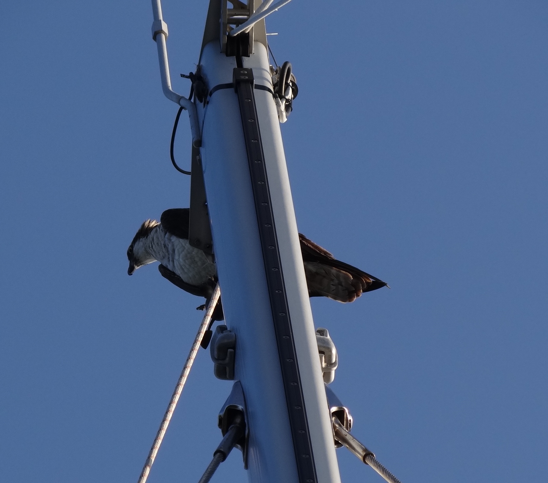 The thing landed with a smack and I jumped, not knowing the osprey was up there. Seems like the local couple has a new family and they’ve been out and about, chattering like crazy and landing on high perches, looking for their next meal.