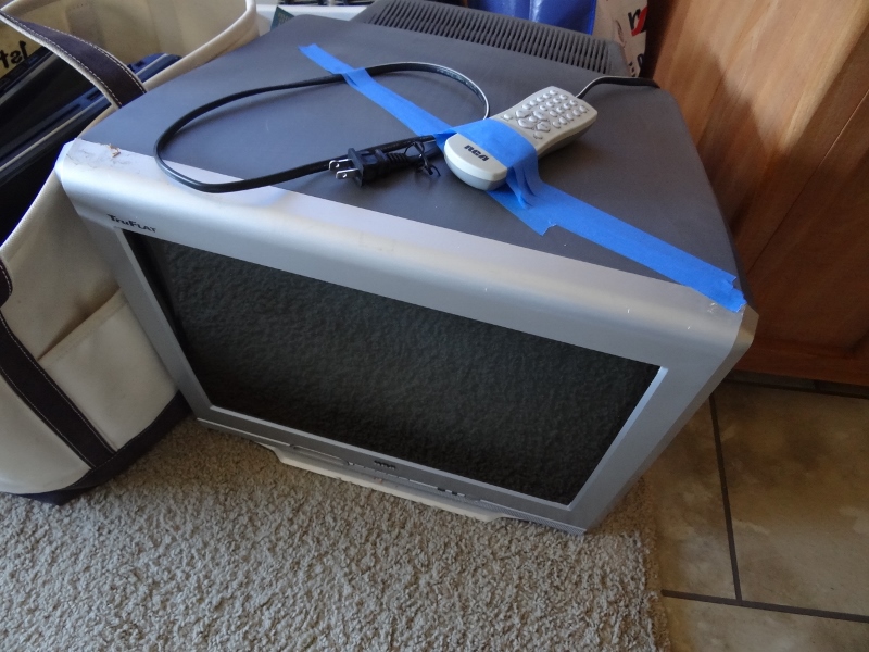 The TV is attached to the wall in back by a moveable bracket. The slide, which you can see the edge of on the left, clears the corner of the TV by an inch as it moves in and out. When Russ is done, the remaining openings at the top of the TV will be filled in and the wires moved out of sight.