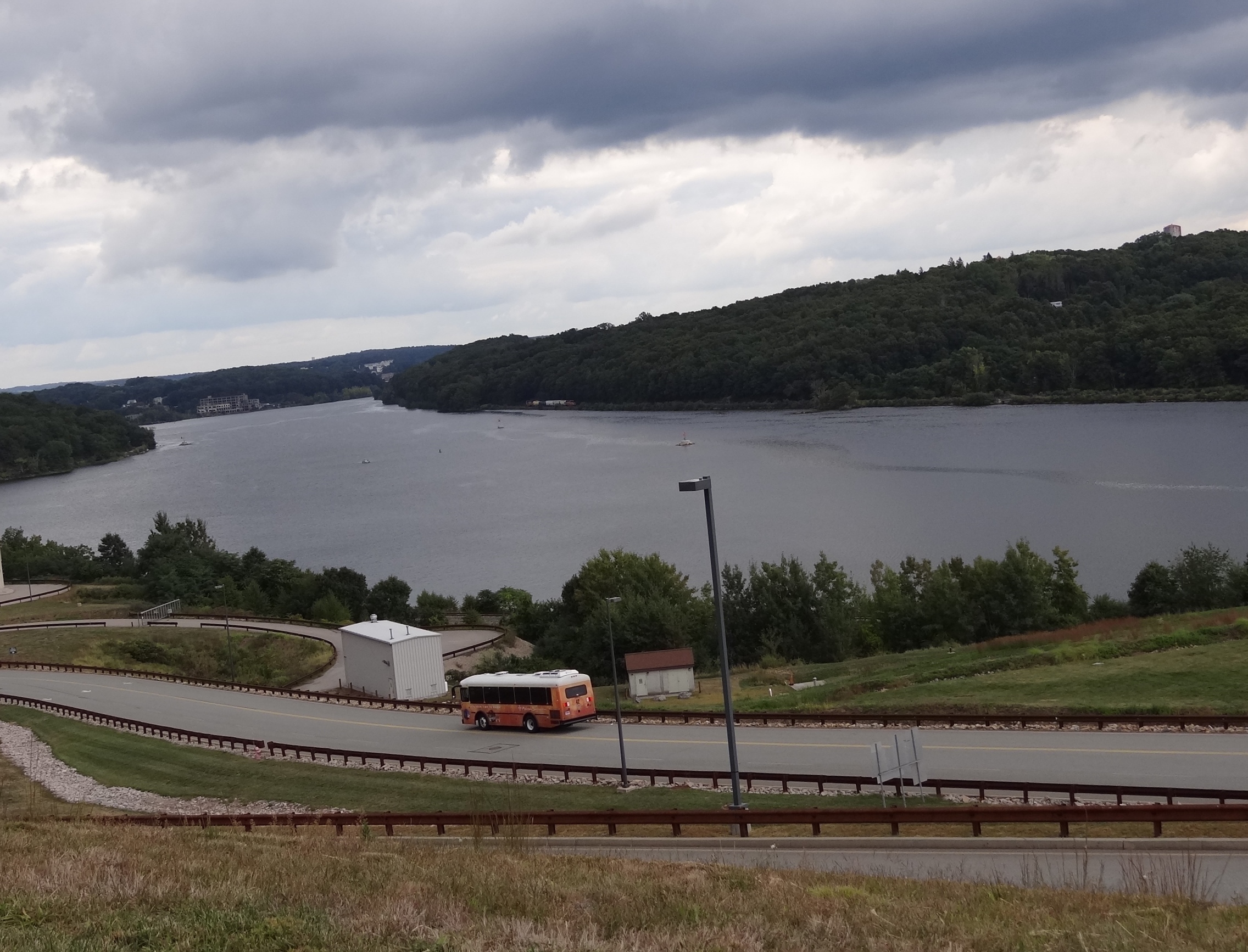 Mohegan Sun has two free oversize lots; one for trucks and tour buses and the other for RVs. They aren’t very level but we managed not to topple over the edge that looks out over the Thames River. You must complete a form to get your permit for an initial 7 night stay which can be extended once. The security guys are so eager for something to do that you are barely into the lot when one stops by. They are very nice and swing through often to be sure all is well. The free property shuttle bus makes the rounds every 15 mins; no sense waiting to throw your money away, so get right in there!