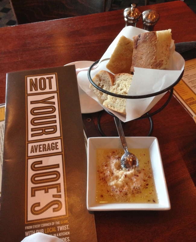 Our day out took us past the Cape Cod Mall and the plethora of shopping centers nearby. Our eagle-sharp eyes spotted a Not Your Average Joe’s in the mall and after noting a Pier 1, Kohl’s and Home Goods we decided to return the next afternoon for a healthy dose of home-stuff shopping culminating with dinner at Joe’s. Not only are the drinks and entrees delicious but the bread with cheese/garlic/EVOO is a meal in itself. So we had seconds, and when we had our remains boxed up (oh that sounds weird) our waiter insisted on giving us an entire fresh serving of bread and dipping oil. We ate like kings for days. 🙂