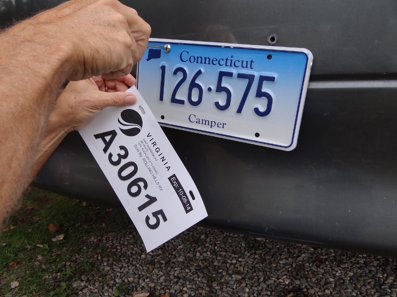 Panicked we rush out, call the dealer and are certain that we didn’t get anything other than the VA registration paperwork. The entire ride home we’re checking those failing memory banks; I mean wouldn’t we remember that? Turns out yes we had the title filed safely and forgotten. But the worst part was that we had to take Annie somewhere to have the VIN certified because we’d bought her out-of-state. A nearby auto dealer was on the “list” and the route was free of too-low train underpasses (several along Amtrak’s route are much less than 12ft). We hustle to stow stuff, bring in the slides, get un-hooked from electric, water and septic and take off. Ok, all set, right?