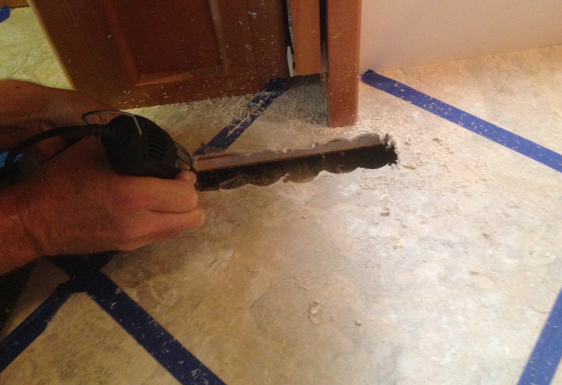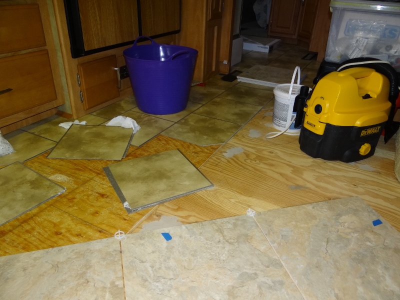 Ten days later we laid and grouted the last six pieces; all that remained to do…. Ahhh would it never end? Yes, finally and boy a million bucks couldn’t have bought a better looking floor. The Captain adds another notch to his Russ-of-all-trades cap.