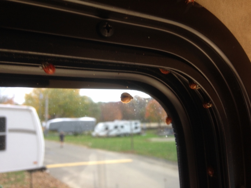 October is ladybug month and once they burst on the scene they don’t leave. Every warm, sunny day found them covering the rig inside and out. And I’m proud to say that not a single lady was purposely harmed during their visits or during my removing them to a better place, aka outside!