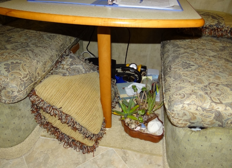 In travel mode:Precious items normally on a counter need to be properly stowed. I decided to still keep a log/journal