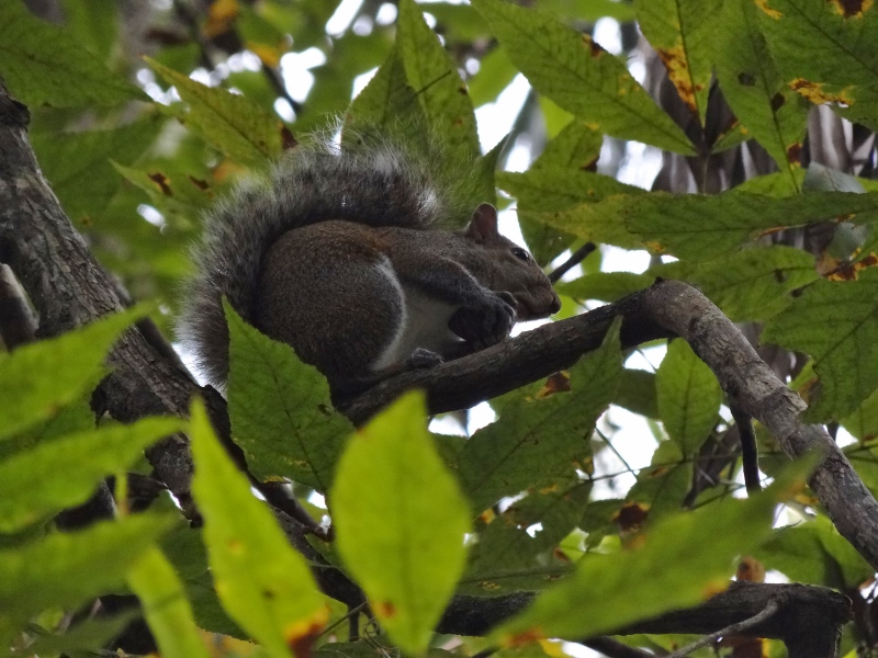 This guy below was fiercely protective of the nut he held. He began his warning sound way before we ever spotted him high up in the branches ahead of us. He kept it up even after we’d walked away; at least 5 mins total. Wildlife was scarce along the nature trails, mostly egrets, squirrels, ibis. Alligators and turtles eluded us.