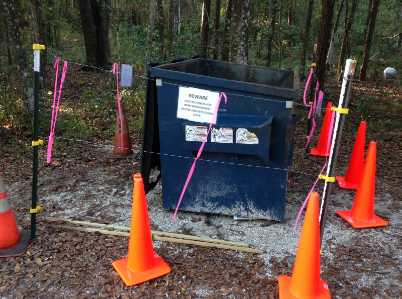 The check-in process is different from Anastasia, requiring Russ present his license and we only get one vehicle tag to place on Bonny. None for Annie, but she’s not leaving until Saturday. Map in hand with no directions from the ranger dude (kid) who I thought we’d bonded with because of his CT connection, we proceed to drive past our loop road thanks to focusing on the bear-proofed dumpster! Yes, we’d been told, a couple of young bears had been in the park recently.
