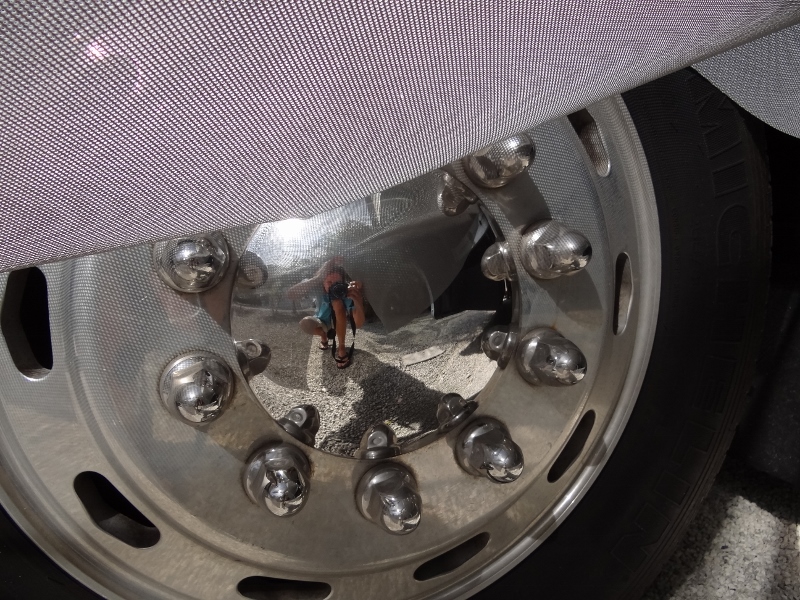 For Christmas Santa brought me a new hub cap to replace the one that went walkabout in Brunswick, GA. This one is an aftermarket one with no “Freightliner” wording but Captain Russ got two for the price of one and cheaper shipping than the OEM version so when another one falls off, I won’t be feeling a bit naked very long.