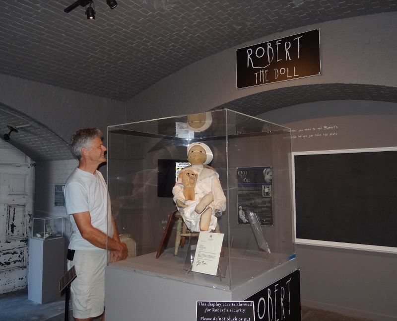 Each visitor receives a personal overview of the museum’s displays and layout. The timeframe of most of the small exhibits ranges from early-mid 1800s to early 1900s. I’m pretty sure the most popular, and the draw for many visitors, including us, is Robert the Doll. This thing is scary; over 2 ft tall, he belonged to Otto Roberts who as young children do, attributed all sorts of childhood shenanigans to his doll, “Robert did it.”