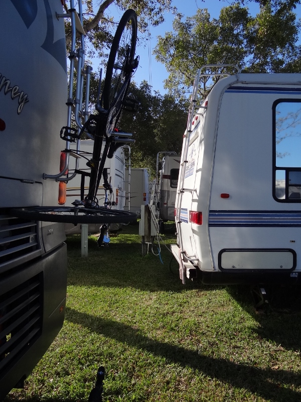 We like the state parks best and campgrounds with a similar vibe and access to biking and walking trails. SoCo is more campground and not so much resort with grass in lieu of concrete as at Venture Out. This sounds nice at first until you discover way more ants and whatever bit the top of my foot leaving it swollen, itchy and feeling like it had been stomped on. Sites are close and this makes for terrific people, camper, dog and cat watching.