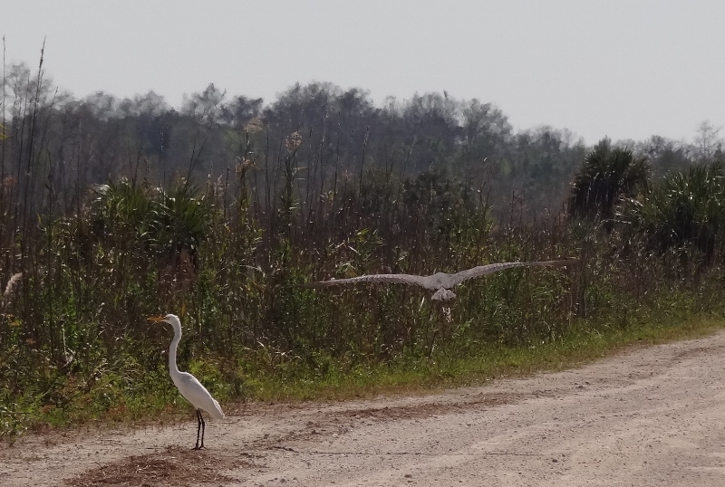 From this campground we ended up exploring mostly west into the Fakahatchee Strand Preserve, the Ten Thousand Islands Refuge and down CR29 to Everglades City and Chokoloskee at the road’s end. Don’t you love these Indian-based names? SR/CR 29 forms the eastern boundary of Big Cypress Nat’l Preserve with Tamiami Trail running west to east through the lower third. Everywhere you drive you see wading birds, gators and birds of prey. Rte 41 is filled with places to stop and enjoy whatever floats your boat; sightseeing, adventure, hiking, dining but with the Tamiami Canal running right next to the road many cars would just pull over to take in the scene.