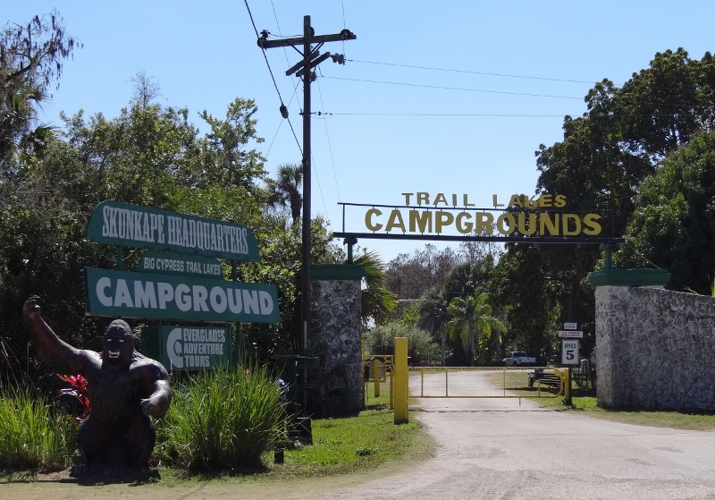 Back in December we’d shortened our stay in Florida City so we could make two additional stops before Melbourne. Trail Lakes campground was right on the Tamiami Trail (aka Rte41) in Ochopee, FL near the western boundary of the Big Cypress Preserve and surely a strange land stood before us when we pulled in.