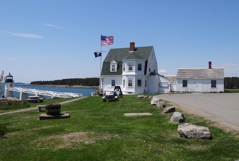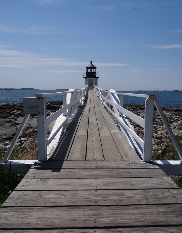 The Marshal Point Lighthouse sits on the point; dare I suggest it’s called Marshall Point? Just a couple miles south of Port Clyde. As you can see the lighthouse and keeper’s house were separate and back in the day the walkway was covered. This must have been one of the cushier outposts; not on a rocky god-forsaken island, pleasant living accommodations and a not horribly tall lighthouse to manage.