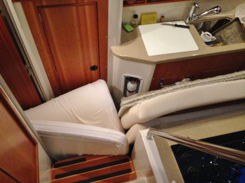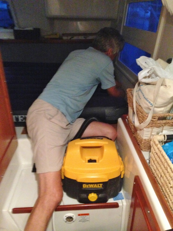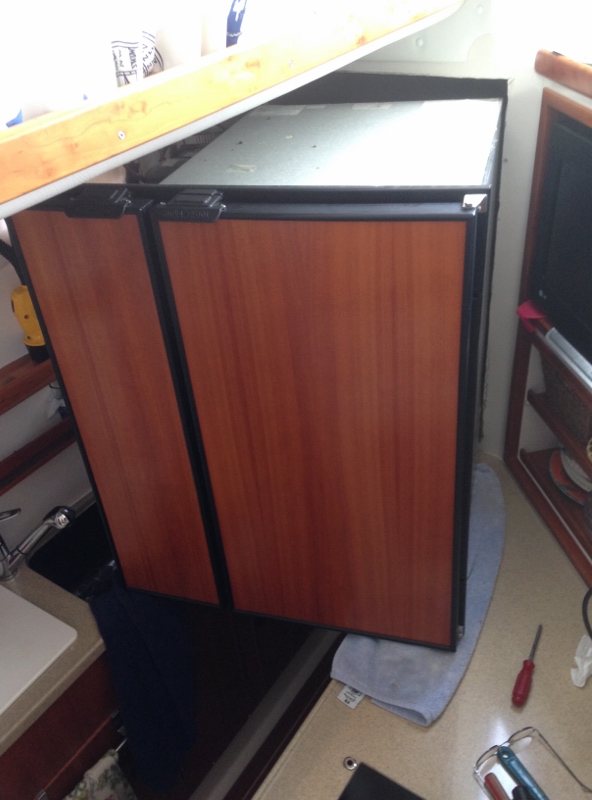 Every day seemed to bring another thing to fix. The fridge had turned off once or twice so Russ pulled it out and cleaned off some connections and since then, knock on wood- which we do have! it’s been working fine. A bit too small, but we are going to add a small fridge up on the flybridge (replace the current icemaker – boohoo), and, are you ready??? Buy an Engel – not a faux one- the real deal – to have more freezer space.