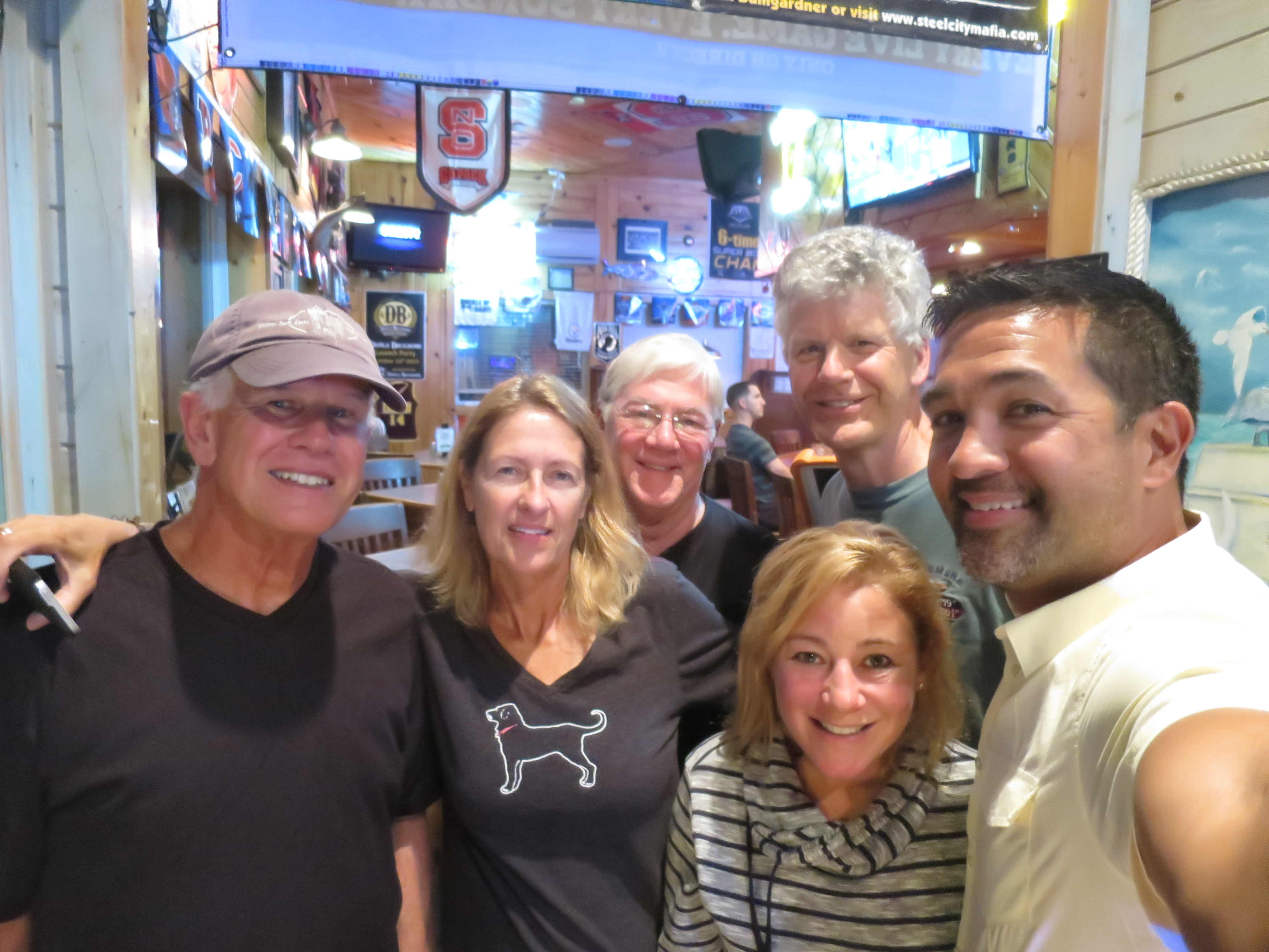 Then a FP sailing cat, s/v Stellar arrived and suddenly our dinner plans for three (Don was about out of food) blossomed to include three more. The marina offers a courtesy car which we used for a grocery run and then for dinner. Getting to Rick’s Steakhouse and Sports Bar took two runs but we all piled in on the return trip, acting way too silly- as in any of our kids would be mortified.