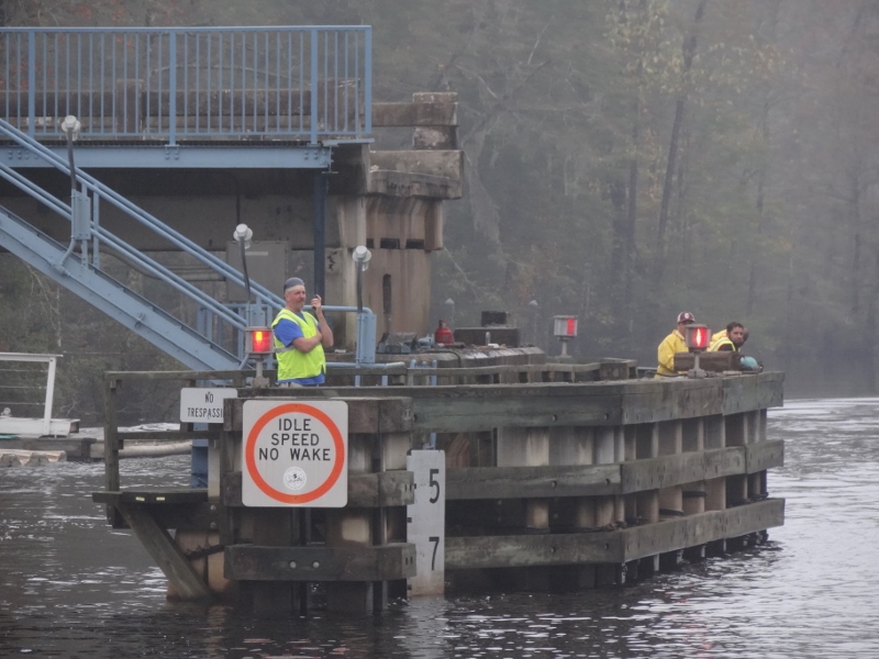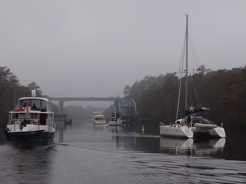 Trust but verify is my motto and I remembered that the bridge info for this particular one included a phone number to call if boaters had complaints about the bridge. So I called and after two more calls, I reached the right person at the company who manages the opening bridges. He confirmed the opening schedule, was concerned that announcements weren’t being heard north into NC and explained that a part had to be machined (we figured that, I mean these bridges are old and you just don’t buy a replacement part at Ye Olde Parts Store) and the repair would take at least a few more days.