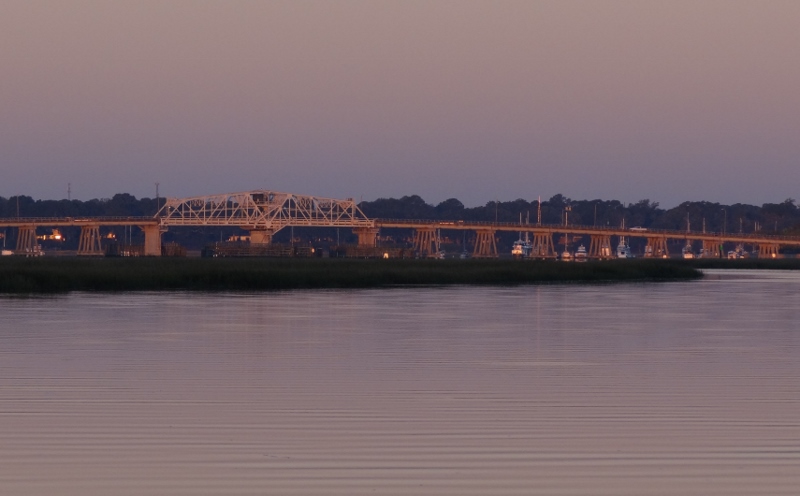 Bea-utiful Beaufort, SC got a wave and glance as we opted to pass by this time. We anchored nearby though in Factory Creek which is lined with lovely southern homes, all with docks for their water toys. At the southern (entrance) end of the creek sits Lady’s Island Marina; a five-star marina that Twin Sisters may grace with her presence one day. We hear it’s a good stop. 🙂