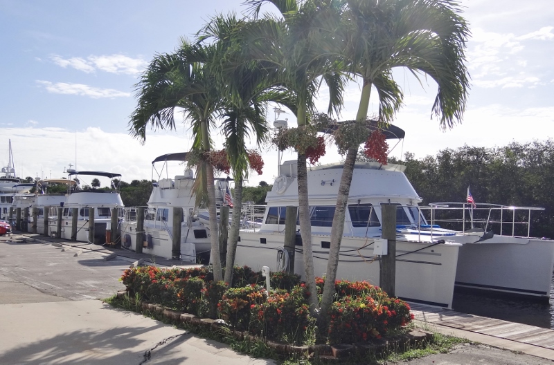 We left Peck Lake in favor of a shorter trip to Stuart Yachts on Friday, our scheduled day to arrive. Anchored in a spot near shore with North and NW protection. A sailing cat sat anchored close by. Was dark when we heard a knock; uh oh. The cat’s owner and no, he wasn’t saying we were too close, rather he had a request. Just yesterday his mooring malfunctioned causing the boat to go walkabout! We commiserated on that; knowing the exact feeling. Now the boat was anchored and could we call if we noticed that she might be dragging. Even asked if we needed anything.