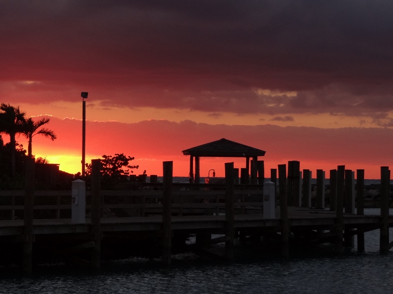Our overnight was uneventful; the sunset gorgeous, the moon lit our way until 4am, sunrise a sailor’s delight but boy it was a squeaky, creaky sloppy ride. Heading due East with north winds gave us waves hitting us almost broadside. While they weren’t more than a foot on the Bahama Banks (between Bimini, and Chub Cay which sits at bottom of Berry Islands) the problem was that due to “chilly” and breezy we ran Twins from the lower helm where the waves pound more. As we moved along at a speed that doesn’t take us over the wave stops, rather they get to have their way with us, the layers of cabinets, doorways, bulkhead, etc., flex and complain rather loudly, especially on the starboard (right) side.