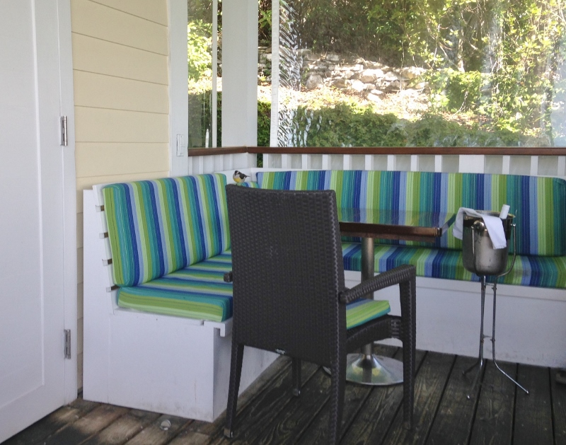 Lunch at Xuma- only one other couple dining in style- the wine bucket is not ours 🙂 The banaquit was my reason for the photo.