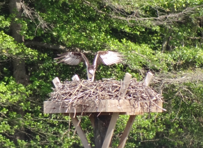 Our spot at the end of the cul-du-sac (you get the idea) was lovely and protected- just what we wanted. Two osprey nests kept the binocs and camera busy. One nest appeared to missing Dad for a very long time, but I am happy to say that he eventually showed up with food.