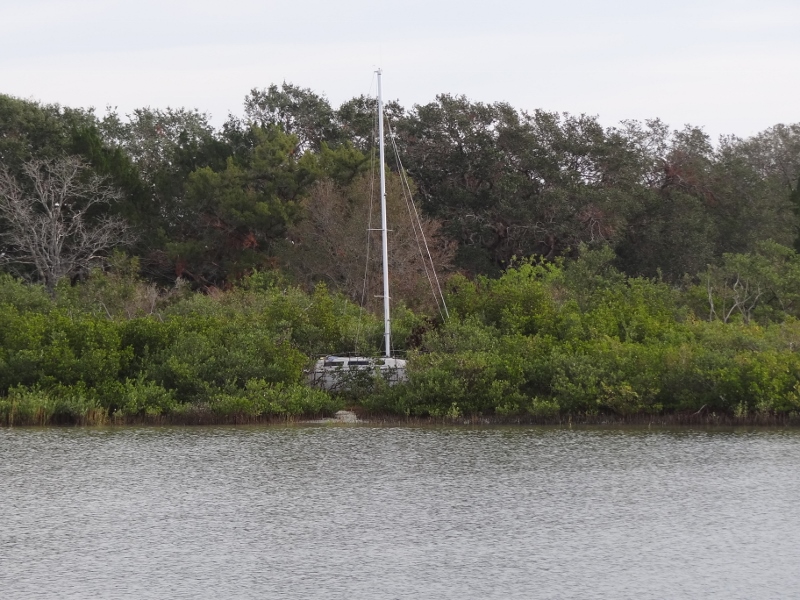 Travel day two after St Augustine would take us through Mosquito Lagoon which, you may recall, is loaded with dolphin and manatees. A few years ago we encountered Vicki and Del in their outrigger canoe- if you missed that post- click here. We’d anchored in Rockhouse Creek Friday night, with an enchanting (can you tell I need new adjectives?) view of the Ponce inlet and lighthouse. S/v Ti Matou arrived and popped over for a boat look-see and I do believe our cleats and chocks were admired for the very first time 🙂 Ok- so Mosquito Lagoon begins about five miles south of Rockhouse Creek and very soon after we upped anchor we see a small-ish center console with what looked to be a- oh wait- it’s an outrigger canoe and it’s Vicki and Del!! Too bad they were headed in the other direction.