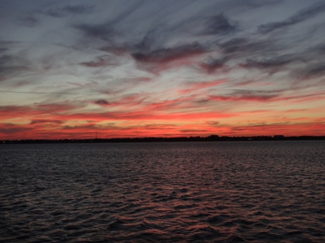 How many trips to Publix? Let me count. Four? Between that and everything else, our waterline was low, very low. Friday Dec 2 was the local boat parade, one of at least 32 throughout Florida. The parade in 2010 was twice the number of boats as this year and larger too, but it was fun to see and we had an ideal perch to watch the boats. And, for the first time since our first rafting in 2010, we had a raft buddy who we didn’t know. Nice folks on Cruisin’Cat– new owners of only two weeks! Boy do they have a lot to do,as we can attest to.