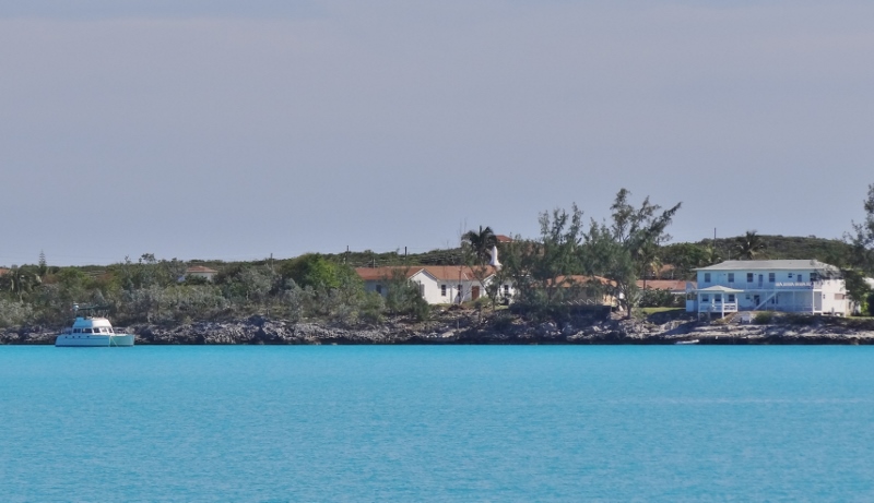 The channel into the harbor from the Sea of Abaco (see photo of chart in prior posting) is narrow and shallow. Many boats can’t enter even at high tide. We happened to get there right about high tide just ahead of a sail cat, trawler and a couple of monohulls who were traveling buddies. One comes in no problem but I looked back and saw the other sitting in the channel, then goes sideways. Uh oh. Turns out the towed dinghy misbehaved; the long painter line getting wrapped around the rudder when the captain slowed way down. One reason we never tow ours.