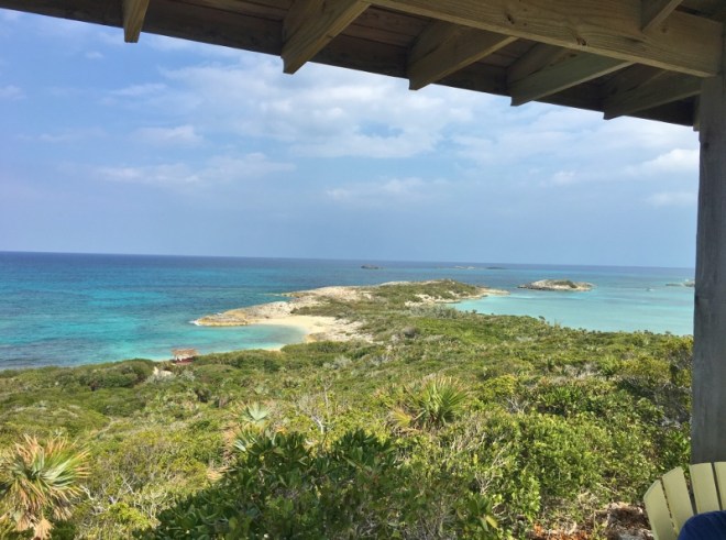 Moving right along….and up to the top of the world, or least the top of Elizabeth Island which is the medium-sized island a stone’s throw south of Stocking Island. Forgive the vague-ness of what I share about TOTW island compound; one of three properties/homes on Elizabeth Island. I am trying to respect Melanie & Paul’s privacy and still share with you the wonderfulness of this place that we have been invited to share. While we haven’t seen the other two homes, I am certain this paradise palace far surpasses.