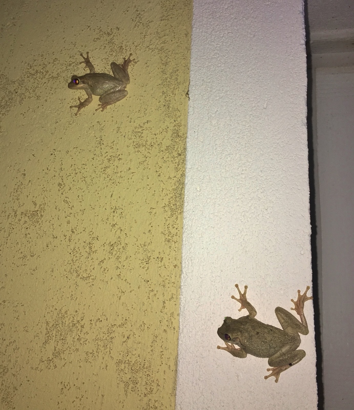 We braved the dark of night to search for ghost crabs in the swamp area but they weren’t cooperating; instead we found frogs on the house. Our daily walks did not produce a Bahamas Boa but we did surprise a couple of brown snakes basking in the sun.