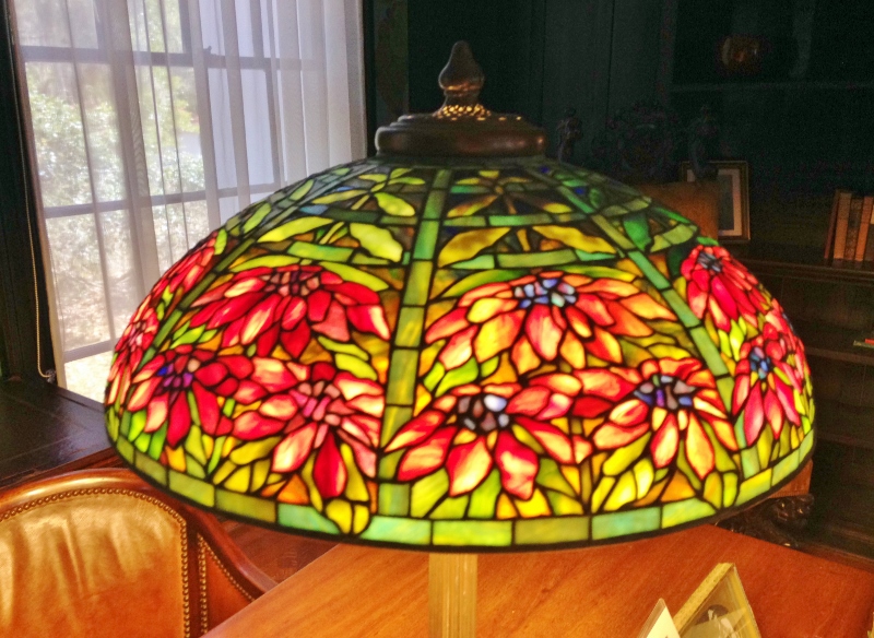 Poinsettia lamp- able to be changed out so to have different flower for each season. Not sure if true Tiffany