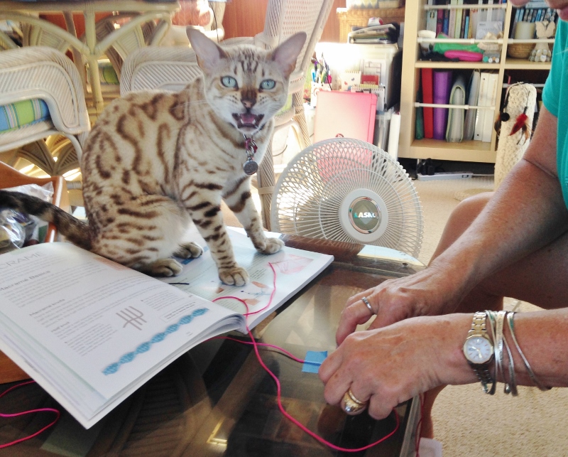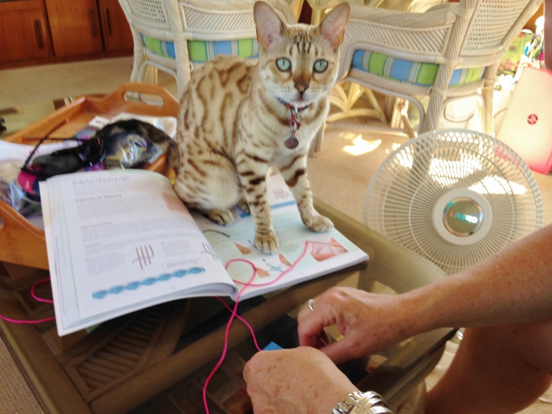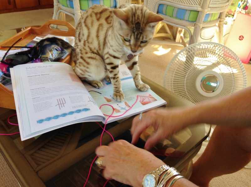 Ann wanted me to show her how to make knotted/macramé bracelets and anklets. Back in February I didn’t know squat and now I have helped others. Could this activity help ward off brain cell decay? I hope so- just keep learning, learning. 🙂