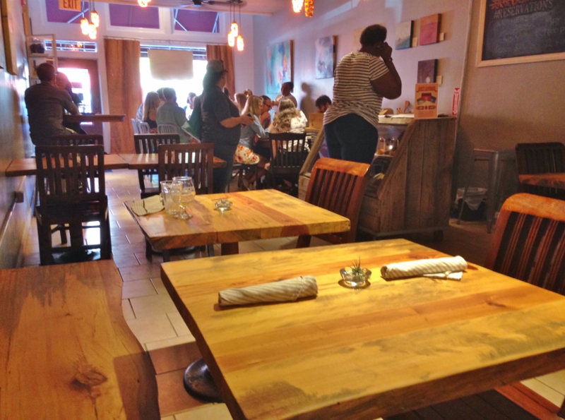 Small, maybe seats 24 tops, open kitchen, farm to table-esque with a southern, African-American flair. We loved it. The top-mentioned server was Jess and we were delighted to be at one of her tables- what a fun person!