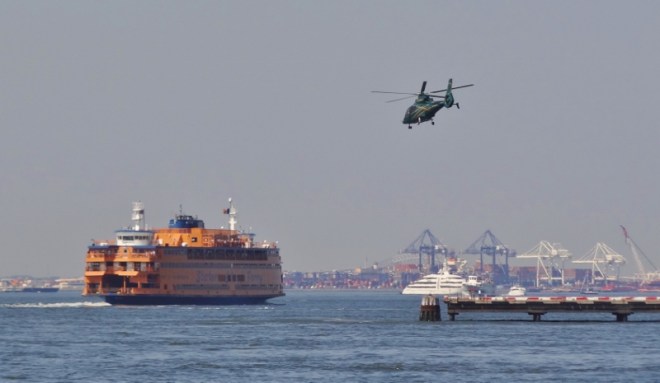So yes, the Hudson was a busy place- did I mention that? Ferries crossing left and right, boats leaving marinas, tour boats- the old Circle Line was alive and kickin’ and we watched for the general vicinity where Cap’n Sully performed his miracle… and I think it’s right about here….