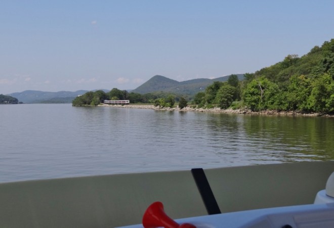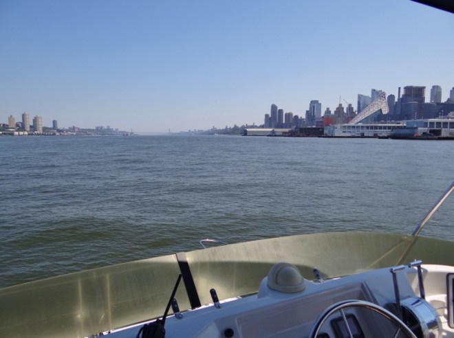 Tuesday ended up being a 10-hour, 90 nm day and no we did not go up the Harlem River which would have saved time. Instead, we chose the bustling, scenic, wild ride route around the tip of Manhattan. We had a favorable current carrying us along in the East River but once we turned up the Hudson, wow we got a major slap back, making only 5.5 kts at normal 2000 rpm, aka 8kts!