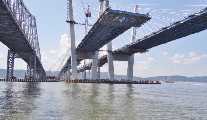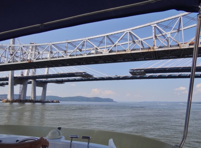 The George Washington was a sight to behold and one we had never seen from the water. No tolls or traffic jams this way. A bit further north is the Tappan Zee which is a better choice if you are in a land vehicle. Three years ago we crossed over on our way to a small RV Show and saw the very beginnings of footings for the new bridge.