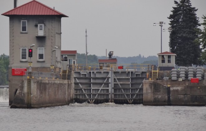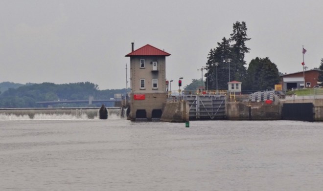 Procedure is you hail the lockmaster on VHF 13 when you are “close” and he tells you how long of a wait, because the lock is never ready for you, even if it’s in the correct position for the direction you are traveling. At best, 5 minutes, worse case 20 minutes. We didn’t know it at the time, but our 20 minute wait was due to another boat heading north, locking through just before we approached. This required a wait for the water level to come up 16ft, then for it to flow out so we could enter at our lower level.